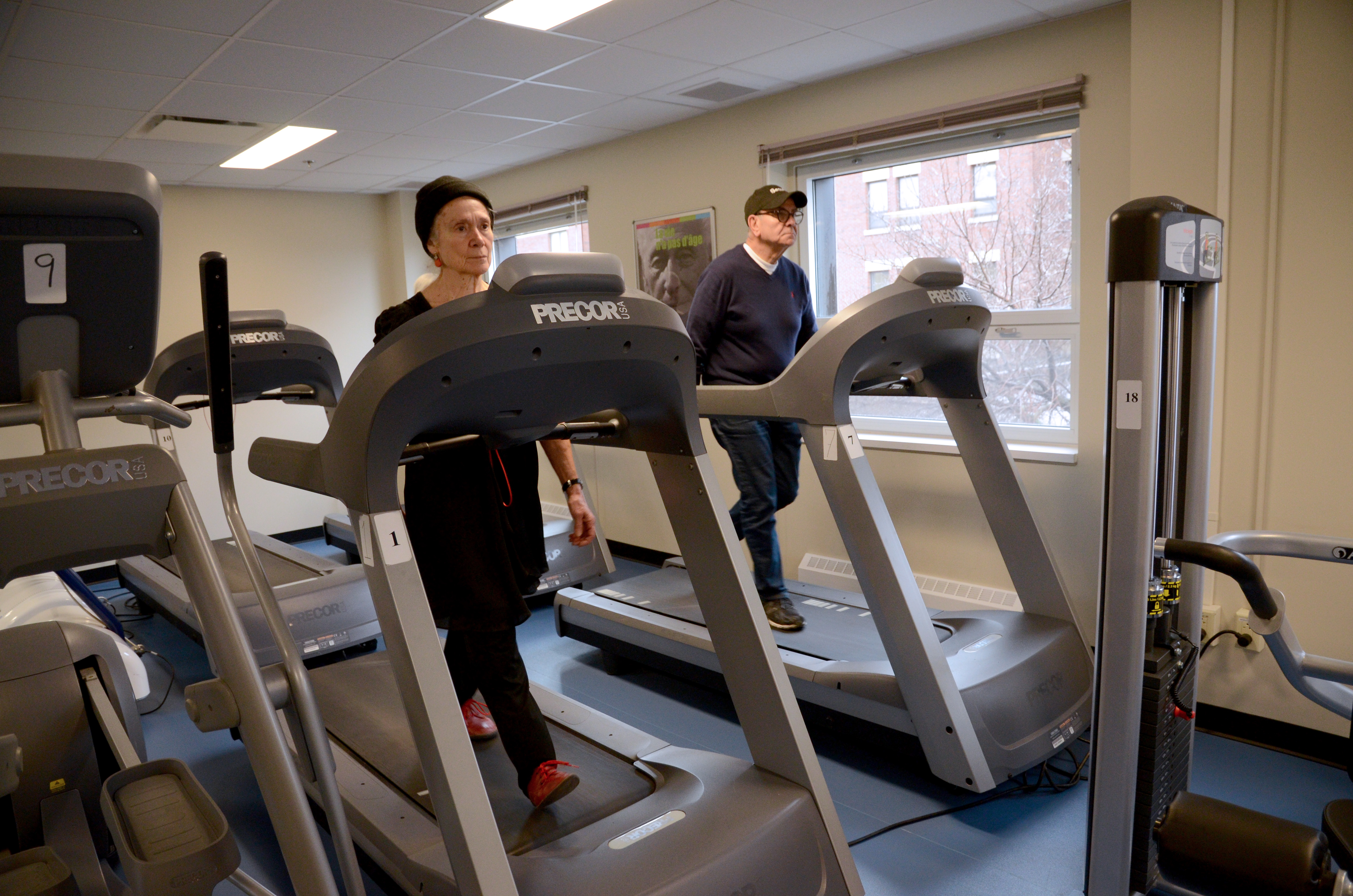 - Gymnase : contient des matelas de sol, chaises et barres d’équilibre (permettant la pratique d’exercices de groupes, de cours de yoga, pilates, taïchi, entrainement à l’équilibre).