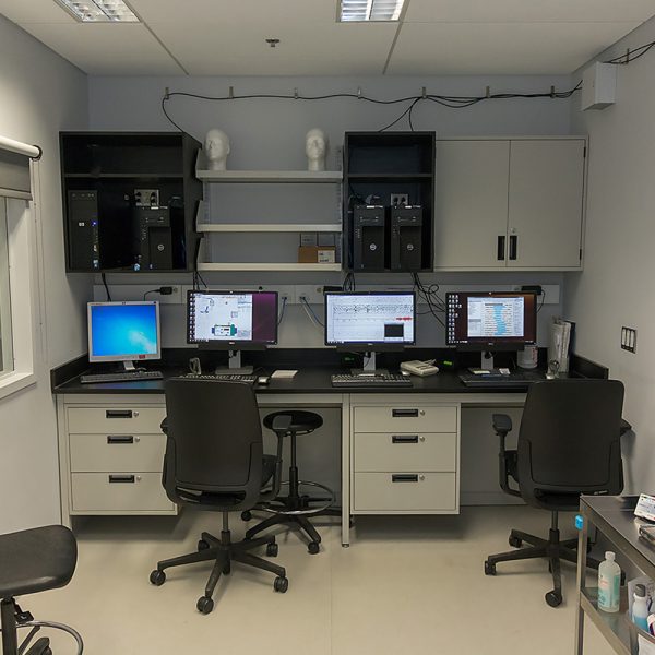 - Le laboratoire comprend aussi une salle médicale adaptée pour les évaluations avec des gériatres et pour les prises de sang, une centrifugeuse et un congélateur -80 ºC, ainsi qu’un local d’évaluation neuropsychologique et un parc informatique pour des évaluations sur ordinateur.