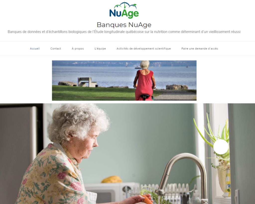 C’est dans cette optique que les banques de recherche de l’Étude longitudinale québécoise sur la nutrition comme déterminant d’un vieillissement réussi (Banques NuAge) dévoilent leur tout nouveau site web, officiellement lancé le 8 mars dernier. Il permet aux chercheurs de découvrir la richesse des données et des échantillons biologiques de la cohorte NuAge et de connaitre plus facilement les procédures et les critères d’admissibilité applicables aux demandes d’accès aux données et à la biobanque.